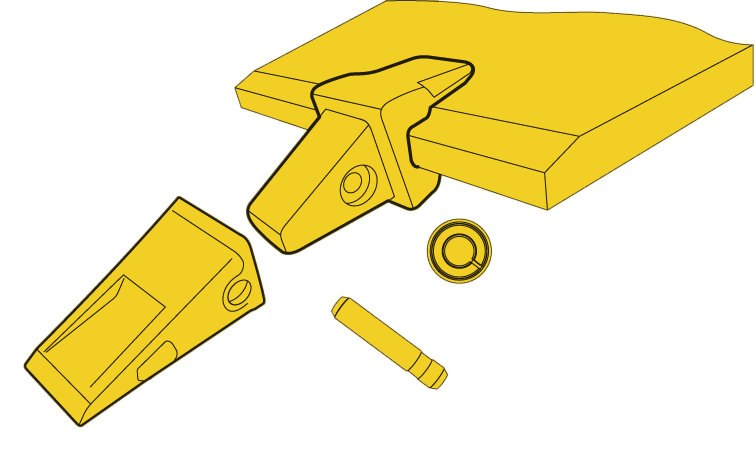 Коронка ковша имеет горизонтальное крепление с помощью цилиндрического пальца E161-3035 и стопорного кольца 61E5-11150, которое устанавливается в адаптер 61N6-31320 / E161-3017. Адаптер 61N6-31320 / E161-3017 подходит для режущей кромки в 35 мм. Существует два вида коронок серии 61N6: 61N6-31310 - с закругленным основанием и 61Q6-31310 RC - с плоским основанием. Экскаватор R160LC-7,R180LC-7, R210LC-7, R220LC-9S