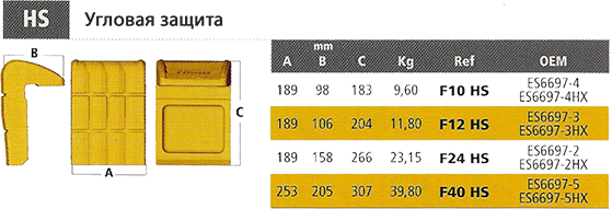 Кутовий сегмент призначений для зовнішнього захисту зварного з'єднання стінки та днища ковша. Є витратним матеріалом. Відрізняються між собою лише типорозміром, який залежить від об'єму ковша. Застосовується в основному на скельних ковшах для роботи з абразивними породами, такими як граніт, габро, базальт і т.п. Кутовий захист збільшує ресурс стикових з'єднань, які схильні до стирання під тиском.